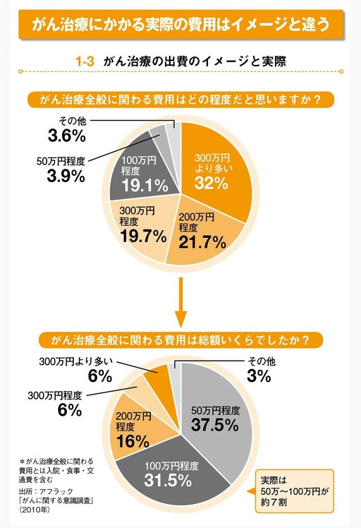 有32%的日本人认为,如今的医院收费很高,得了癌症恐怕得倾家荡产地拿出300万日元以上的巨资用于治疗吧?