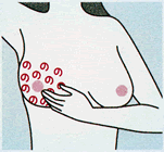 在医学上常以乳头的水平线及垂直线将乳房分为四个象限,医生从外上象限开始触诊,我们自我检查的时候也可以从外上象限开始,按着一定的逆时针或顺时针的顺序,注意不要遗漏部位。