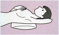 取仰卧位,肩胛下垫毛巾或小枕头进行触诊,还要进行腋窝和锁骨上区的触诊,排除隐匿性乳腺癌。