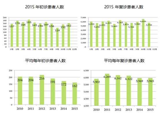 1. 2015年 初诊患者人数 前沿患者人数统计比较