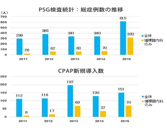 11. PSG(心脏变时功能)检查统计:总例数对比,CPAP(持续正压通气)例数
