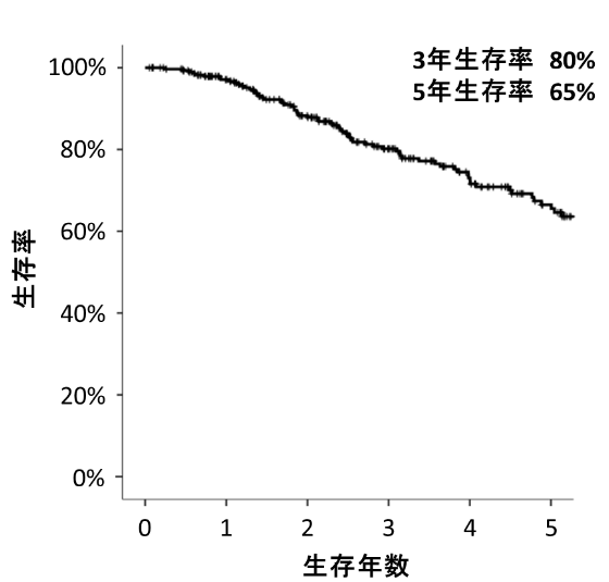 转移性肝癌切除术患者的生存率曲线在本院(2005年至2016年几年)