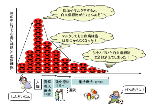 由于白血病分型和预后分层复杂,因此没有千篇一律的治疗方法,医生需要结合细致的分型和预后分层制定治疗方案。目前,日本医学界主要有以下治疗方法:化学治疗﹑放射治疗﹑靶向治疗、免疫治疗方法方法、干细胞移植等。