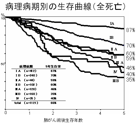 肺癌的情况下,通常,ⅢA生活会手术从Ⅰ期的主题。因为它不是一个器官肺来增加剩余计划的连斩,有时肺功能不能手术和坏。5年生存率在手术后,病理分期在大约Ⅰ期:80%,Ⅱ期:60%,Ⅲ期:40%,Ⅳ期:小于10%。由于抗癌药的效果是小细胞癌大,在进行手术的情况下,也就是在手术前或手术后进行化疗的原则。