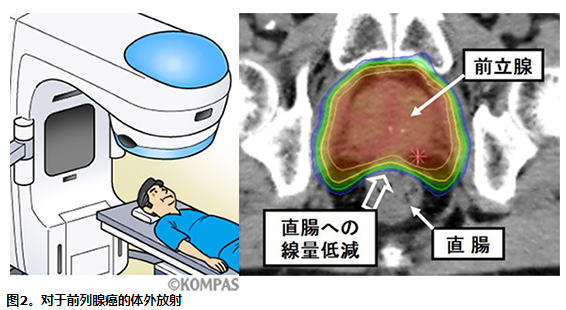 当我们医院实际进行放射治疗,还有辐射到前列腺照射近距离放射治疗中嵌入外部照射和辐射源从主体(种子处理)的外部进行。
