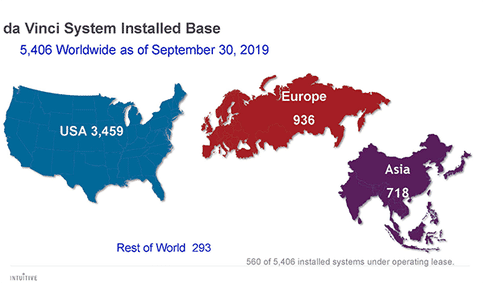 根据日本机器人外科学会的数据显示,在亚洲大约有700多台达芬奇手术机器人,其中一半以上在日本的医院里使用。目前国内能够应用达芬奇机器人手术系统开展肺叶切除的医院仅有少数几家。而早在2000年,美国权威部门就认可了达芬奇手术系统在泌尿外科上的应用,同年3月日本也开始使用达芬奇外科手术。而2015年,日本国内医院使用达芬奇手术机器进行的胸外科手术就已经高达13228起。
