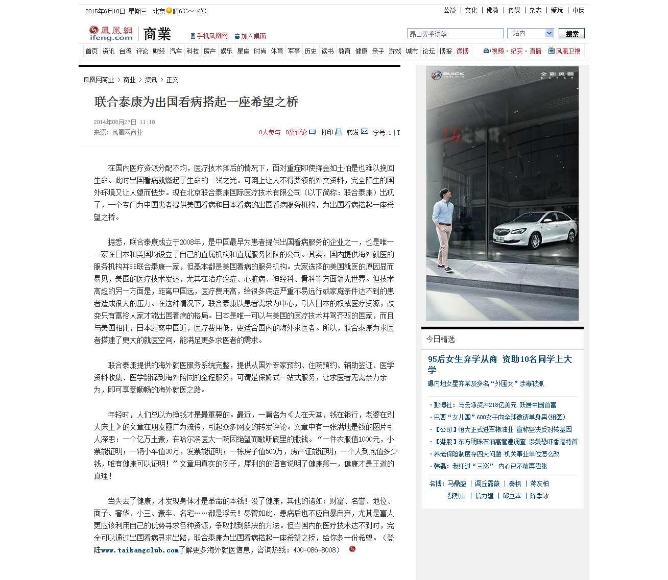 凤凰网:hopenoah为出国看病搭起一座希望之桥