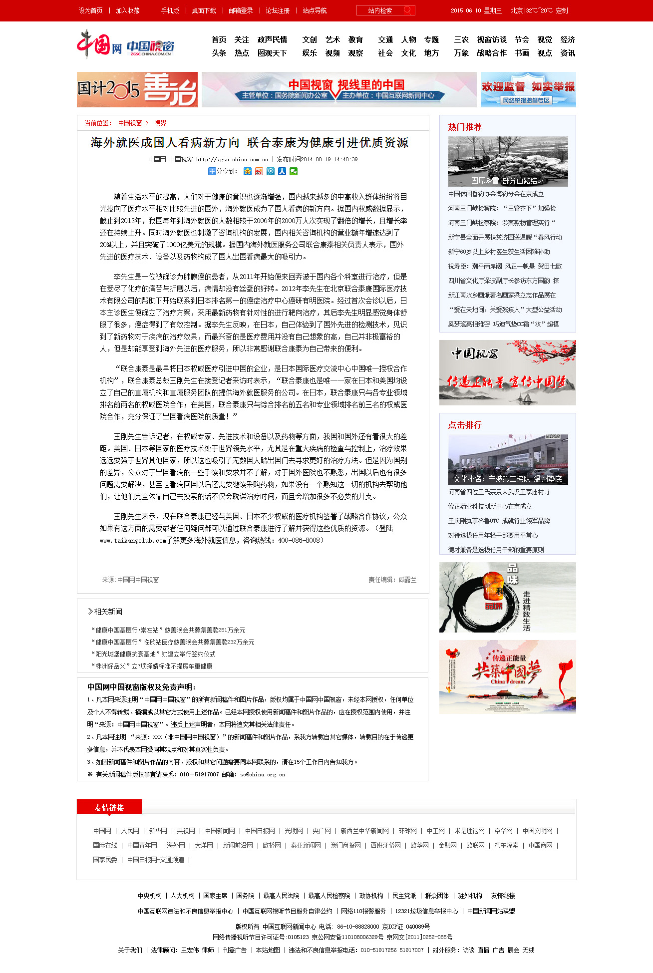 中国网:hopenoah为国人健康引进优质国外权威医疗资源