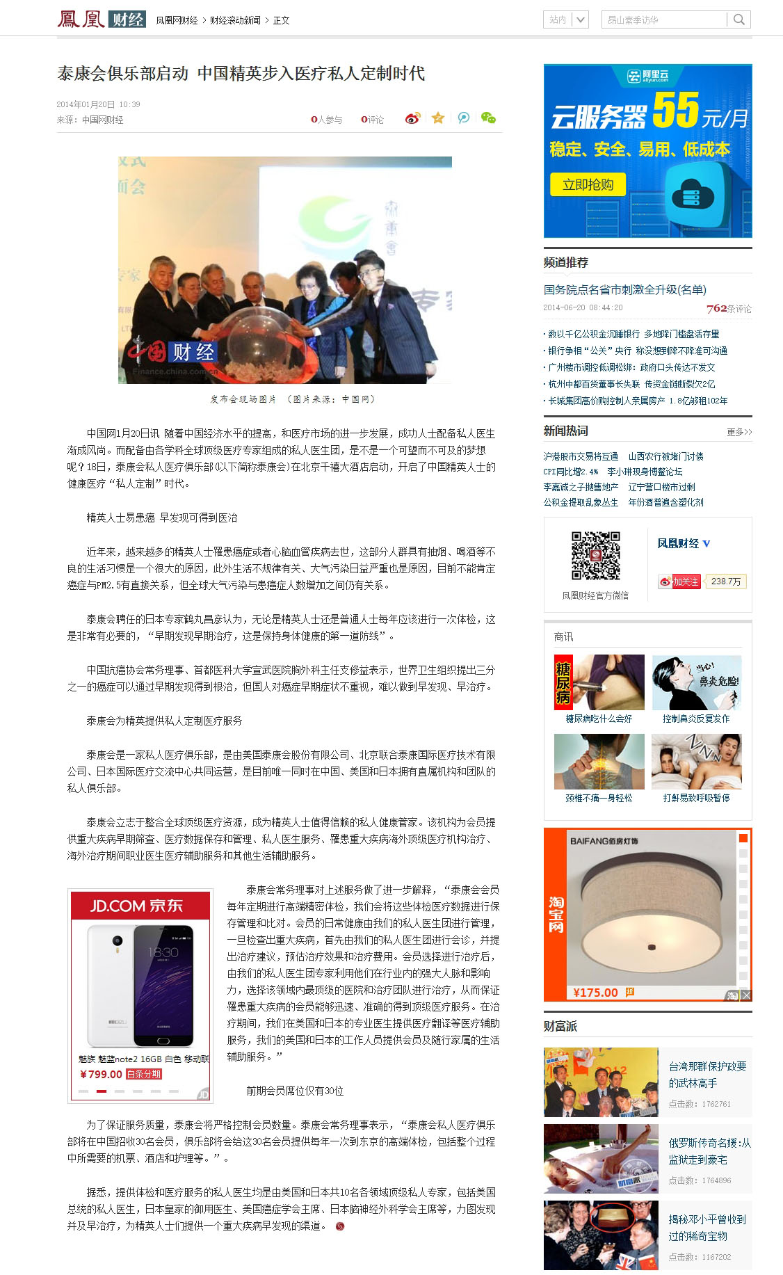 凤凰财经:hopenoah会俱乐部启动 助中国精英医疗步入私人定制时代