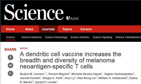 去年,一项为三个黑色素瘤患者量身打造疫苗的临床试验把他们的结果发表在了《Science》上。他们选取了3名可切除的三期皮肤黑色素瘤((MEL21,MEL38,andMEL218)的患者,然后对他们切除下来的黑色素瘤进行了基因分析。之后,根据得到的信息,研究者为他们打造了自体功能成熟IL-12p70产生的树突细胞疫苗,而且是根据每个人的不同情况分别制造。