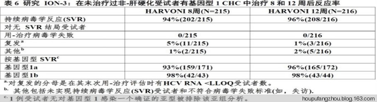 ION-3是在未治疗过非-肝硬化有基因型1 CHC受试者一项随机化,开放试验。显示1b型患者可靠数据在8周和12周均为98%的可靠数据。