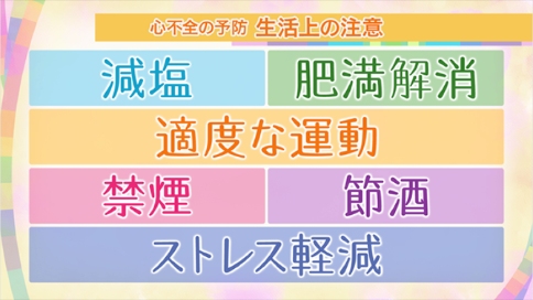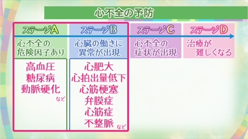 为了预防心力衰竭的发生,我们在A和B阶段时就应在生活习惯上加以注意,如盐分摄入的减少,消除肥胖,适度运动,戒烟,节制饮酒,减缓压力等等。