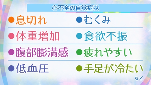 对心力衰竭的早期发现而言,能及时知道自己的自觉症状,也是重中之重。具备代表性的就是气喘、浮肿。此外,体重增加、食欲不振、腹部膨胀、易感疲劳、低血压、手脚发凉等都为不可忽视的自觉症状。