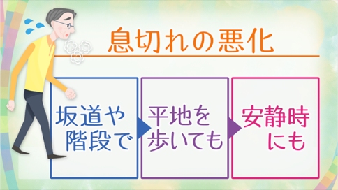 有关心力衰竭引起的气喘症状恶化。在初始阶段,可能只是在上坡或上楼梯时感觉喘不上气,但接下来,即使在平地行走也会气喘吁吁,甚至 到静养时仍会感到气喘。因此,在气喘现象尚未进一步发展恶化的阶段,就应引起必要的重视。