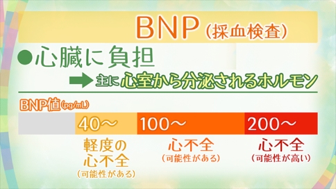 BNP(B型脑钠肽)主要存在于心室隔膜颗粒中。它的含量与心室的压力、呼吸困难激素调节系统的状况息息相关。是协助诊断心力衰竭,判断病情严重程度和预后的重要指标,已经成为临床上心力衰竭较重要的生物标志物之一。可以通过采血来检查。如果BNP值(血液浓度)>40(pg/mL),则有可能是“轻度心力衰竭”;如果BNP>100,则可能患有心功能不全;若>200,则患病可能性更高。