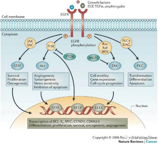 EGFR基因是细胞生长重要的调控基因,它的功能主要是促进伤口愈合。当EGFR由于某种原因产生了突变后,会无休止地刺激细胞生长,导致肿瘤的生长和扩散。而EGFR抑制剂,可作为癌症靶点药物抑制EGFR的活性,进而控制癌症的生长。在非小细胞肺癌中出现表皮生长因子受体(EGFR)突变的患者可以选择EGFR通路的靶向药物进行治疗。目前有3种前沿的EGFR靶向药物可供大家选择。