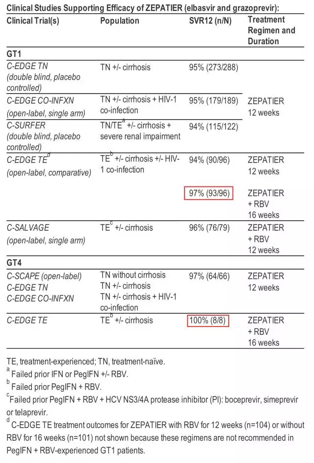 2016年1月28日,美国FDA批准Zepatier(elbasvir & grazoprevir)联合或不联合利巴韦林(ribavirin)用于治疗慢性丙型肝炎(HCV)基因1型和4型成年感染者。