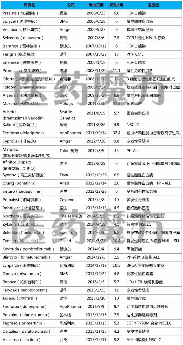 2006-2015年FDA加速批准的NDA/BLA