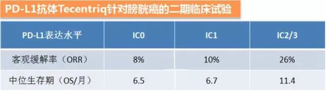 在已经批准的膀胱癌中,也显示出来PD-L1表达量越高,可靠数据越高的趋势: