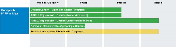 ▲针对rucaparib的多个临床试验研究
