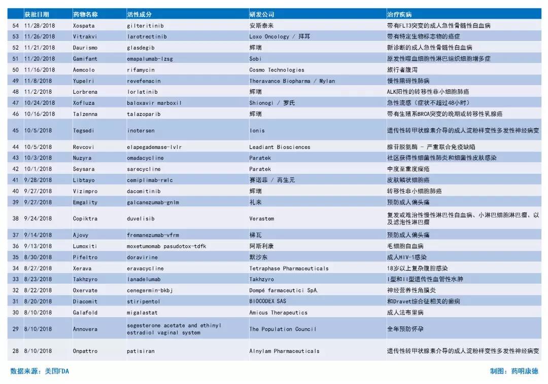 我们祝贺这款新药顺利上市,为AML白血病患者造福。2018年还剩下一个月,而美国FDA批准的新药数目已经突破了历史纪录,在接下来的一个月里,这一新纪录还可能被不断打破。