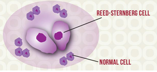淋巴瘤是由Reed-Sternberg细胞(成熟的B细胞是恶性的(癌性的)和特别大的)的存在而标记的。