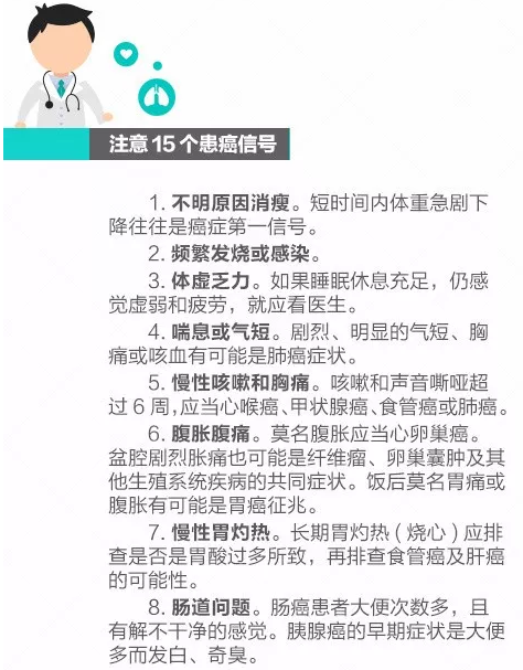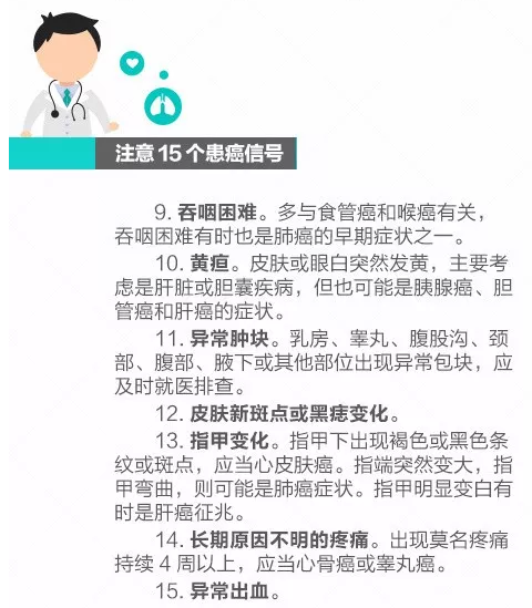 你和癌症之间只隔4步,警惕这15个癌症信号!
