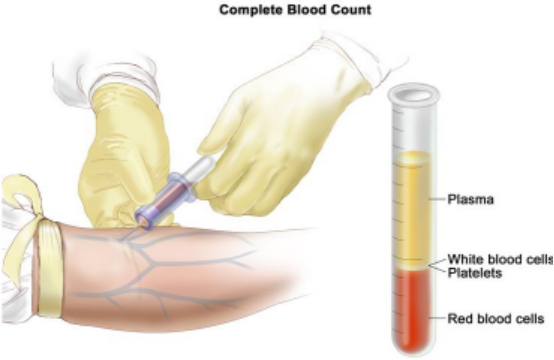 全血计数(CBC)。通过将针插入静脉并使血液流入管中来收集血液。血样被送到实验室,计数红细胞,白细胞和血小板。CBC用于测试,诊断和监测许多不同的情况。
