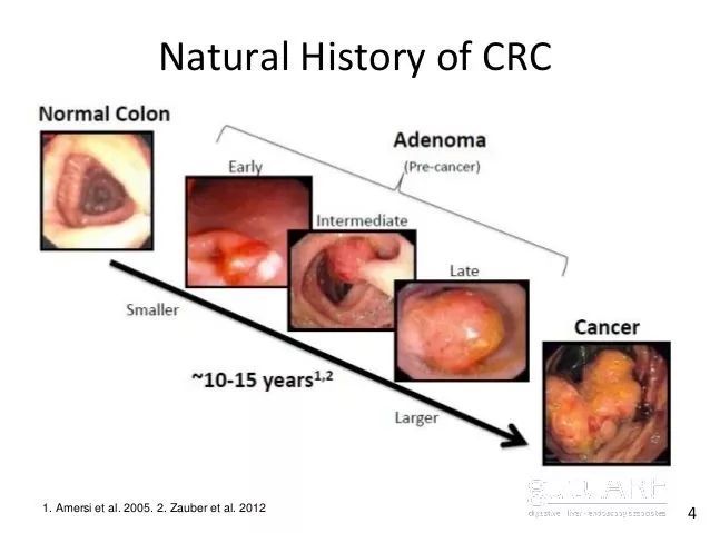 从癌前息肉开始,经历一些基因突变,发展为不典型增生,再发展到癌症往往需要数年甚至十几年的时间。有家族史的病人发展会快一些。从早期癌症发展到晚期又需要一段时间,其进展速度往往取决于癌症的恶性程度。