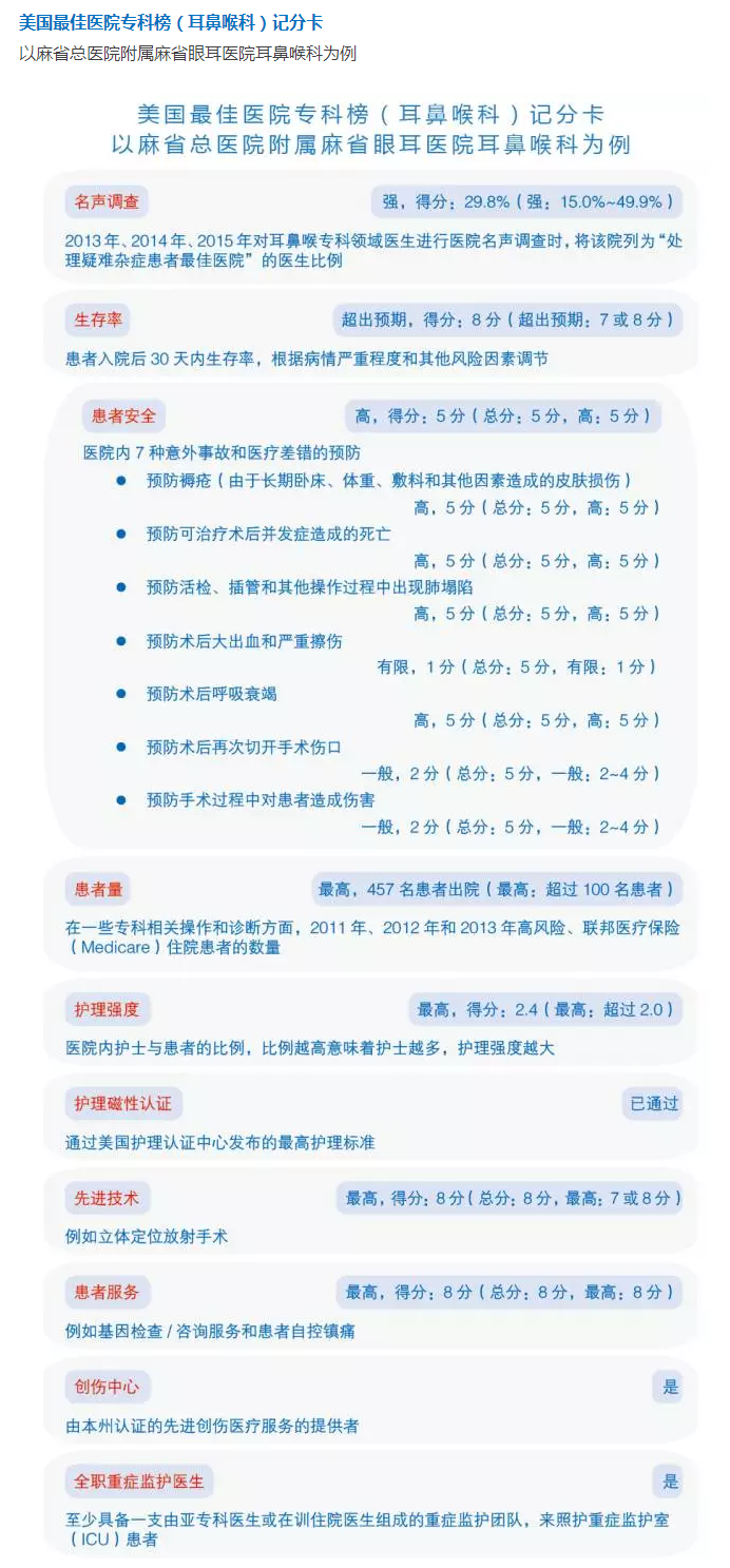 2016美国医院耳鼻喉科排名:麻省眼耳医院继续称霸