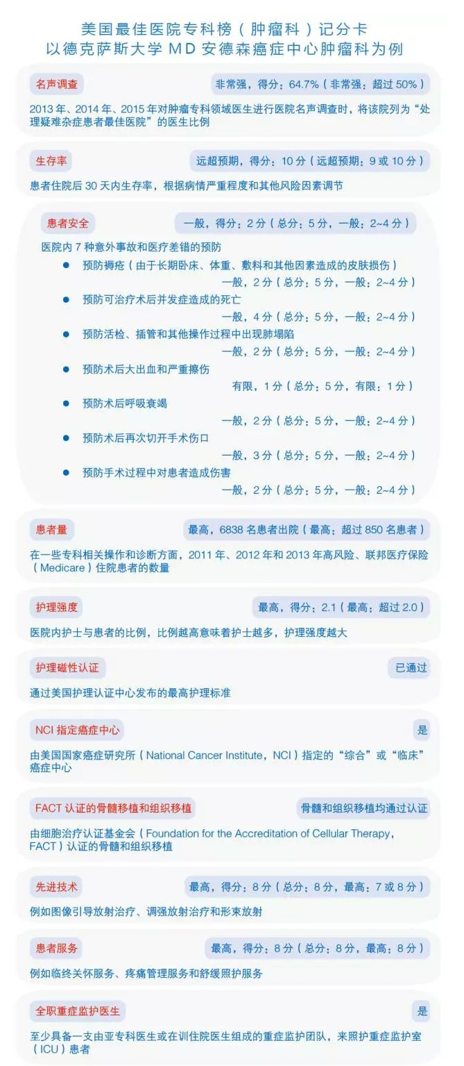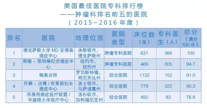 2016美国医院肿瘤科排名:MD安德森癌症中心更胜一筹