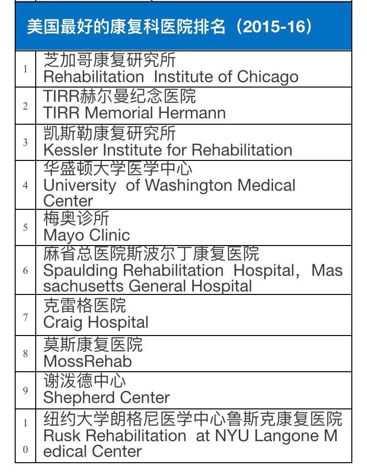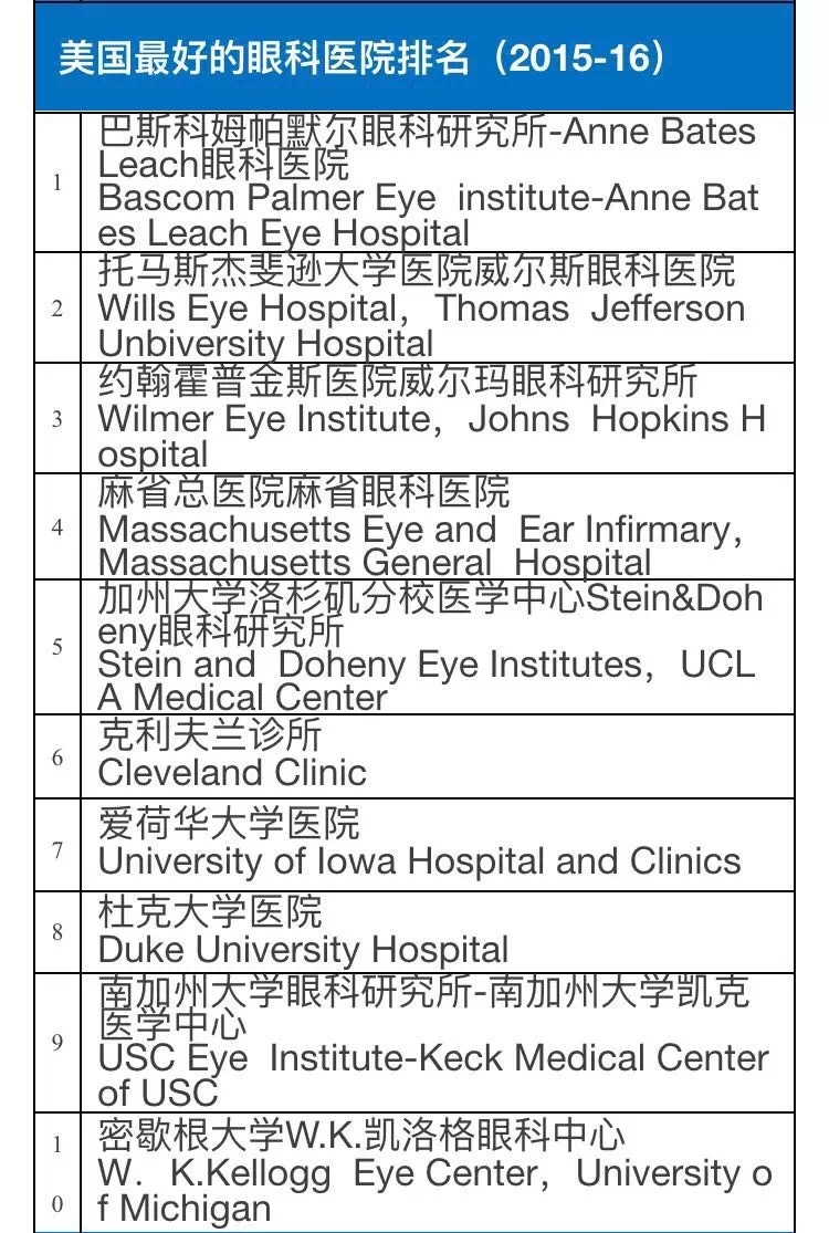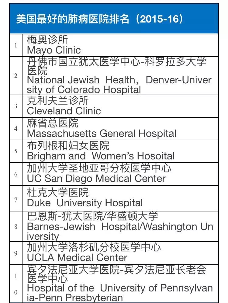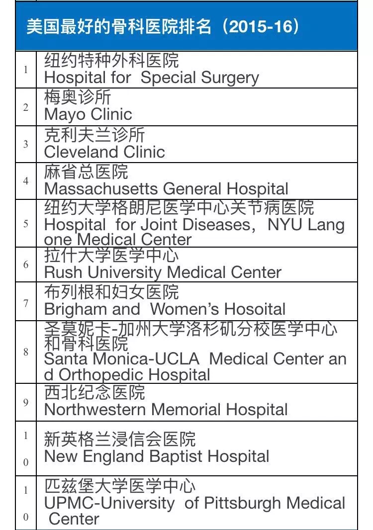 2015-16美国权威医院综合排行榜及16项专科排行榜