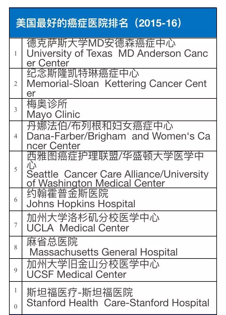 上一篇:2016美国医院肿瘤科排名:MD安德森癌症中心更胜一筹 下一篇:美国医疗-2016-2017美国儿童医院排名