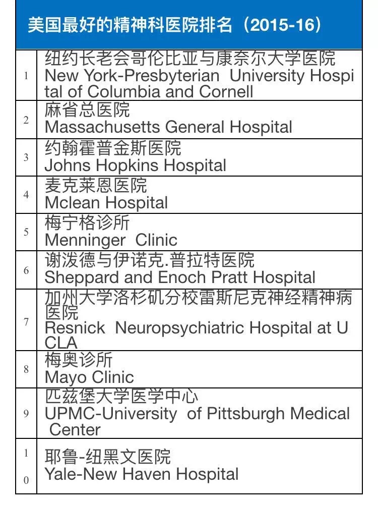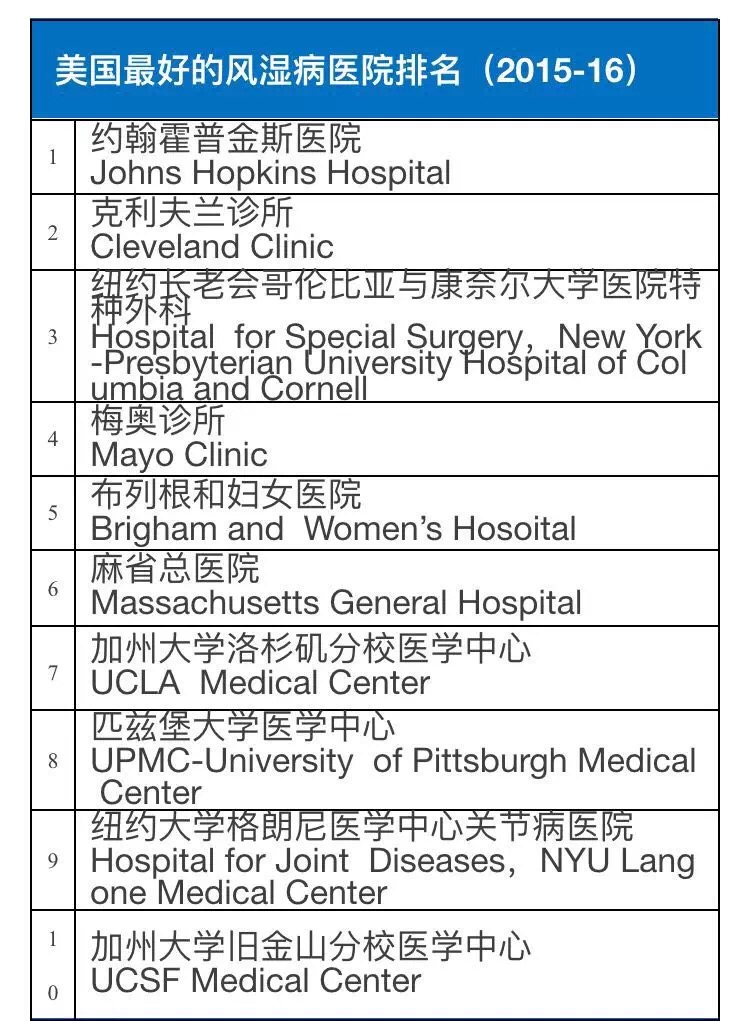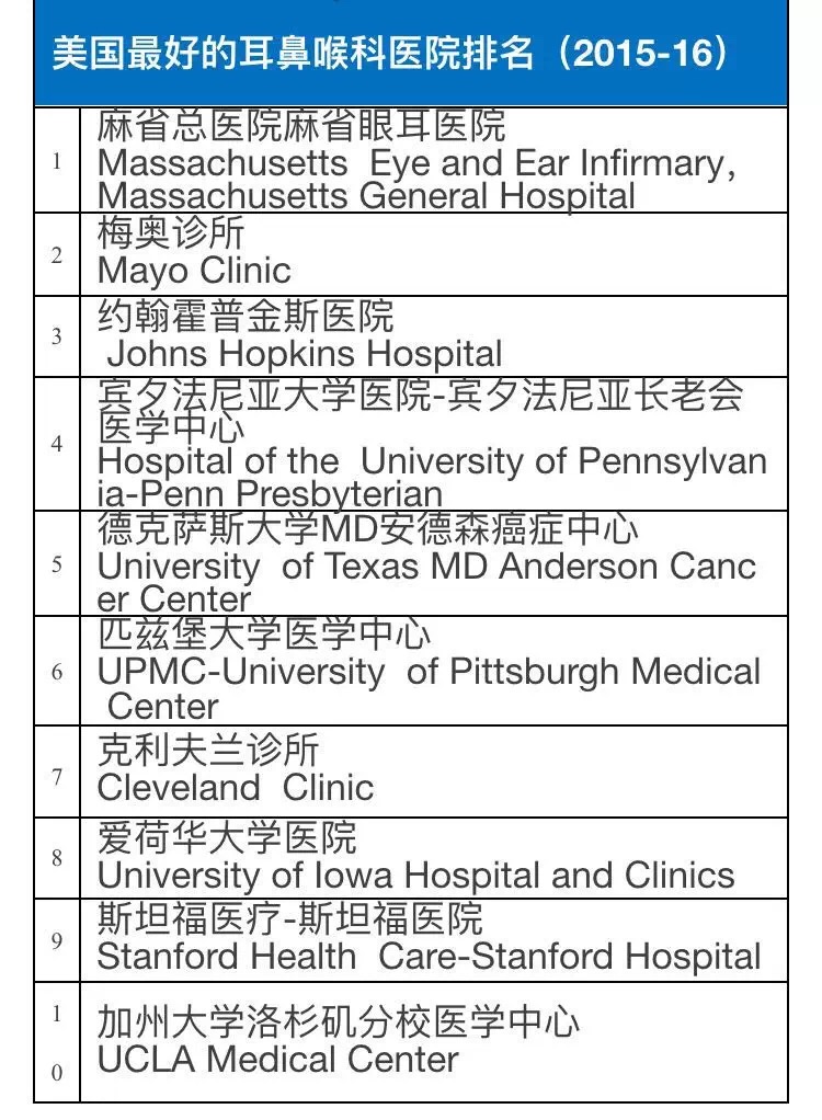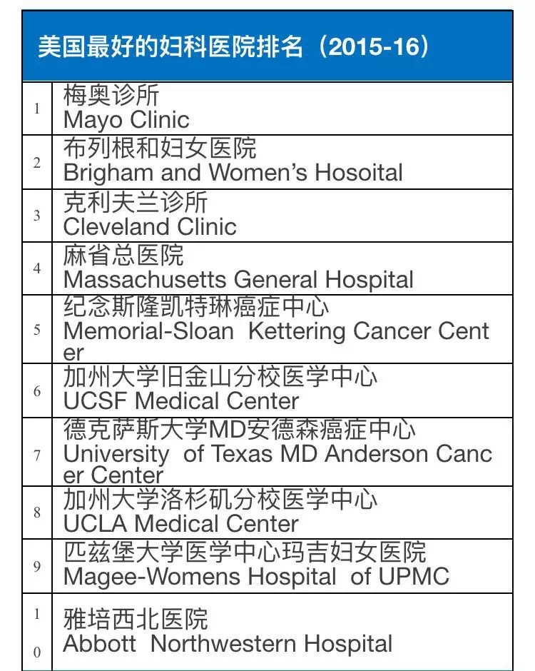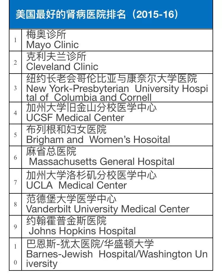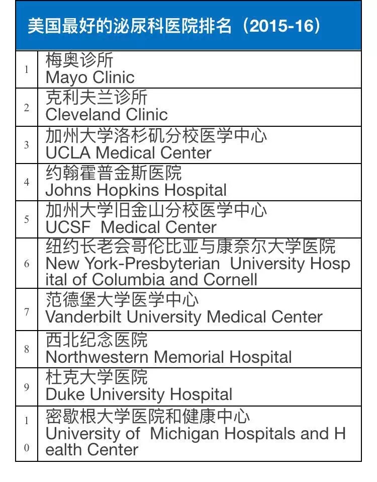 《美国新闻与世界报道》调查了超过9500名专家并根据5000家医院的数据信息,甄选出了美国2015-2016年在癌症和泌尿学等16个学科领域较有权威性的医院。