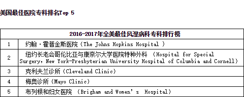 出国看病:2016-2017年全美权威风湿病科专科排行榜