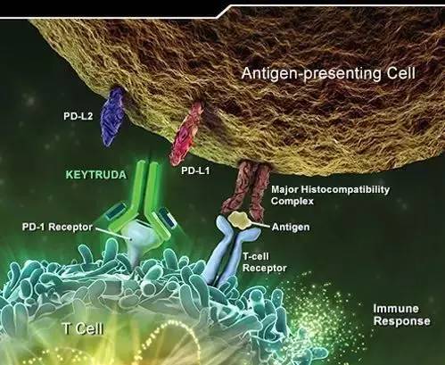 Keytruda是人源化单克隆抗体,通过提高机体的免疫系统能力来帮助检测和抵抗肿瘤细胞。 其作用机制是阻断PD-1与配体PD-L1/PD-L2之间的结合,从而激活T淋巴细胞进而狙击体内的肿瘤细胞。Keytruda是美国FDA批准的前列个PD-1免疫检查点抑制剂,目前治疗适应症包括黑色素瘤、肺癌和头颈部肿瘤。