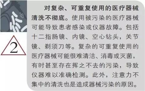 对复杂的可重复使用的医疗器械清洗不完全可增加患者交叉感染风险。重症患者中经常使用的喉镜、纤维支气管镜、经食道超声等均需按操作规范使用,并接受严格的清洗和消毒。强化无菌观念,加强细节管理。ICU医务人员应认真学习感控知识,正确掌握各种医疗器械的清洗和消毒规范。
