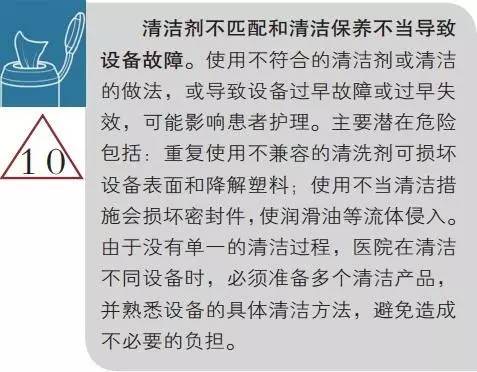据出国看病领导品牌厚朴方舟了解到,美国急救医学研究所(ECRI)发布了2017年度十大医疗技能危害,旨在提醒医疗机构注意医疗器械及医疗设备潜在的不不受威胁因素,以减少对患者的危害。其中,输液泵的使用不当可致患者死亡,居十大医疗技能危害首位;可重复使用器械和加热冷却系统的感染风险、软件管理疏漏和阿片类药物监测的挑战也位列其中。