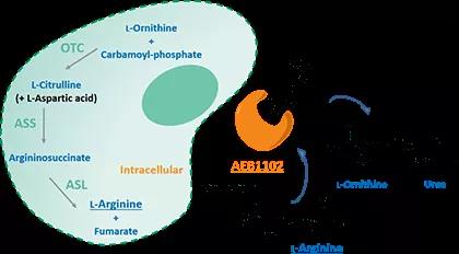 ▲Pegzilarginase(AEB1102)作用机制(图片来源:Aeglea BioTherapeutics公司官网)