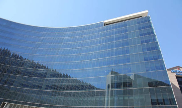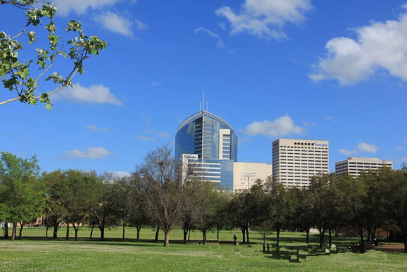 医院大楼远景(从附近莱斯大学校园拍摄)