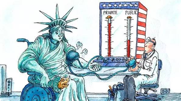 虽然美国公共医疗的花费占到了美国医疗总花费的45%到56.1%,但是这毕竟不能涵盖所有的美国公民。不少的美国人既不能得到政府提供的医疗保险,也不能得到雇佣者提供的医疗保险,亦或自己收入低买不起医疗保险,甚至自己就干脆选择不要买医疗保险。当这些美国人在得不到慈善机构的帮助时,或者不需要付费的医疗不是很容易地得到时,他们自然会选择不去看医生,也不去医院。这个问题确实是美国社会目前面临的一个大问题,也确实会影响到美国人的平均寿命和美国医疗总体的高昂费用。因为这批人如果不生病的话,就没有问题。但是一旦他们生大病, 需要到医院住院接受治疗的话,那么花在他们身上的医疗花费就会相当的大,而这个高昂的医疗花费是没有人来买单的, 就只有逼迫全社会来为此买单。于是这个难以解决的医疗问题也就成为了美国国家层面上的一个政治问题,并引发了不再停息的政治争论。